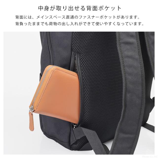背面には、メインスペース直通のファスナーポケットがあります。
