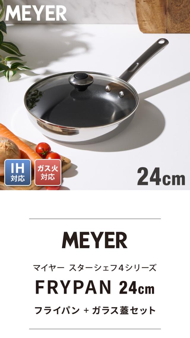 MEYER マイヤー フライパン 24cm ガラス蓋セット ステンレス ガス火 IH対応 PFOAフリー STAR CHEF 4 スターシェフ 新モデル シルバー フッ素 焦げ付かない シンプル おしゃれ(代引不可)【送料無料】