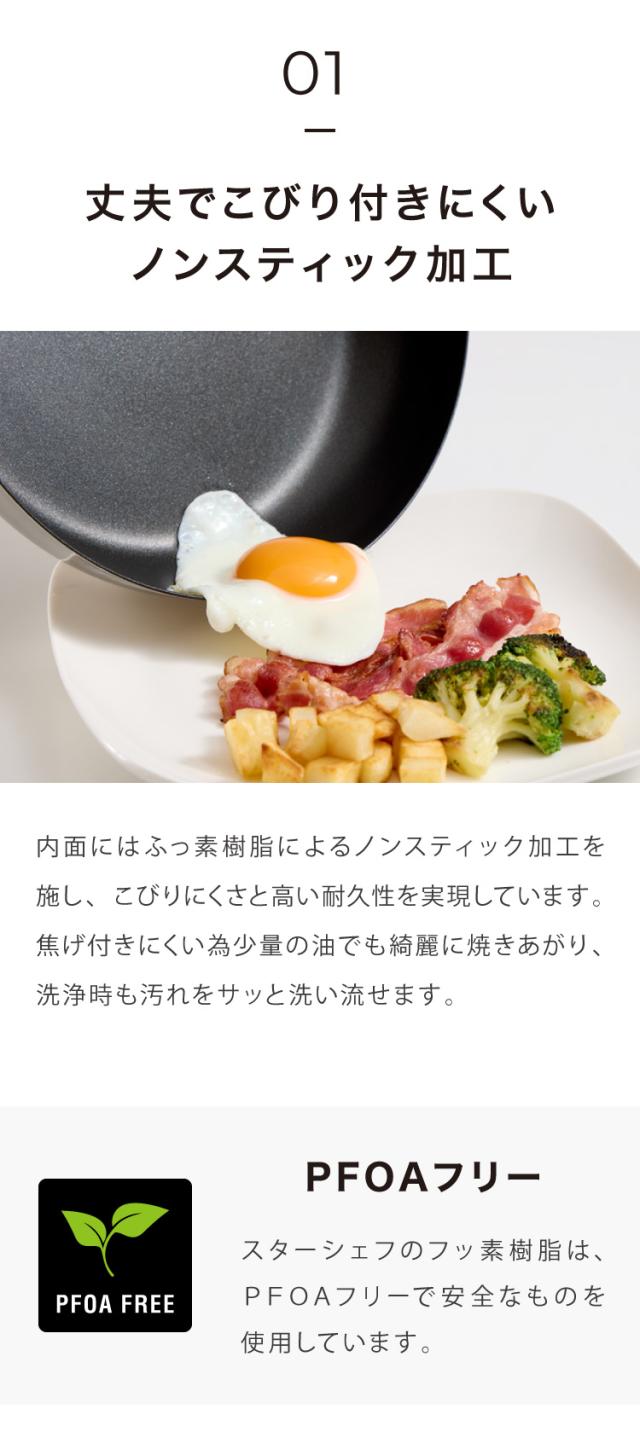 ステンレス + ふっ素樹脂加工 (PFOA フリー)
