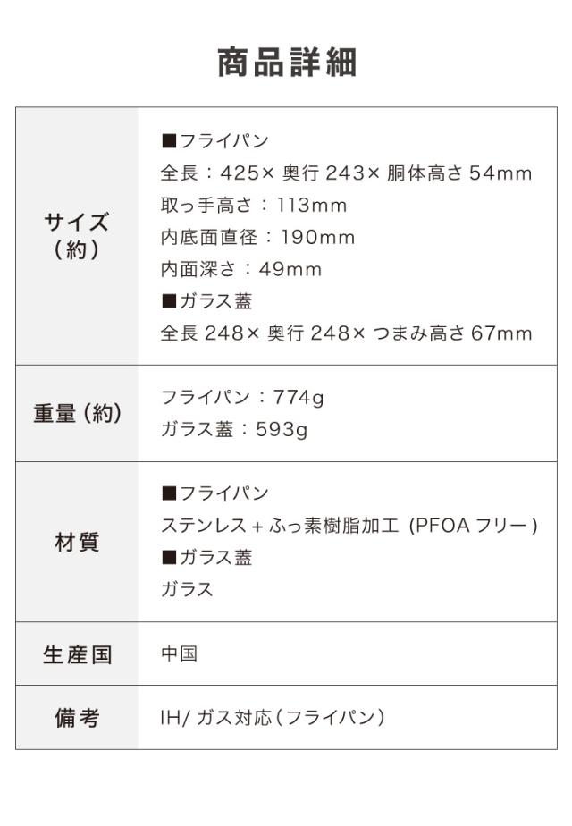 フライパン 20cmガラス蓋付き | フライパン 24cmガラス蓋付き | フライパン 26cmガラス蓋付き | フライパン 28cmガラス蓋付き |