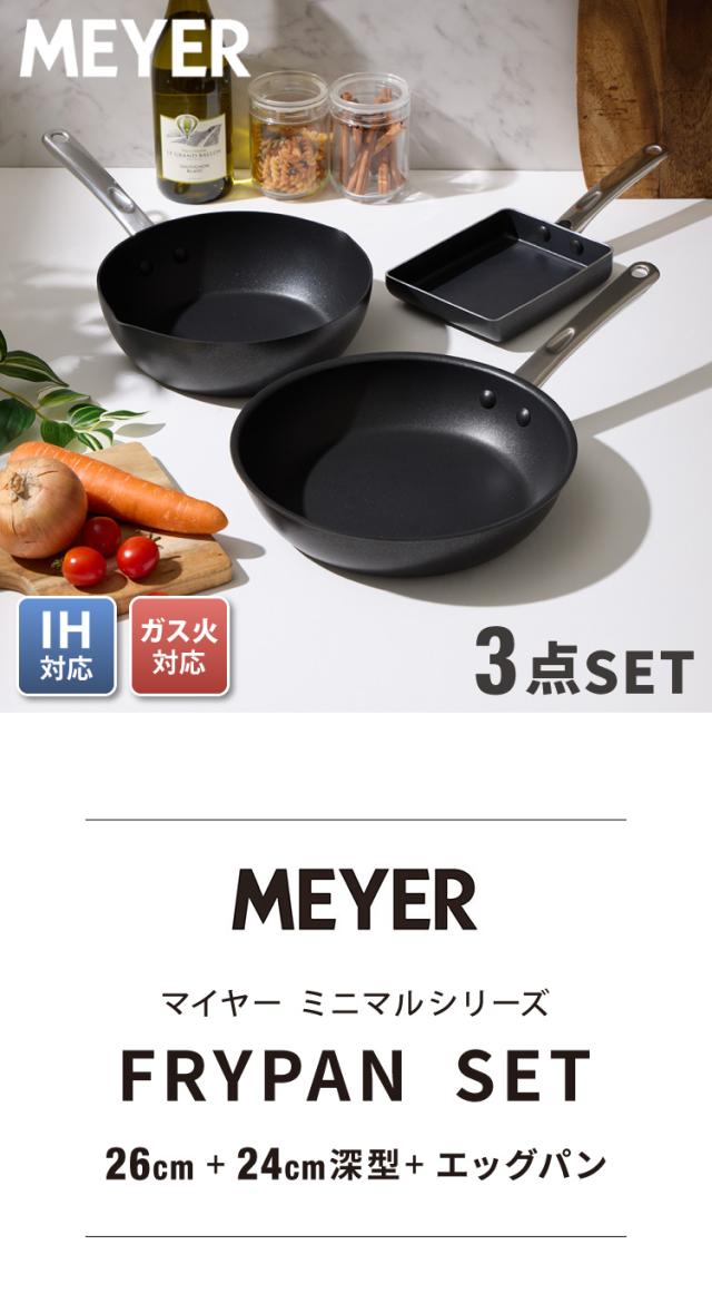 MEYER マイヤー フライパン 3点セット 26cm 24cm深型 エッグパン ガス火 IH対応 PFOAフリー ミニマル Minimul ブラック 黒 ステンレス シルバー フッ素 焦げ付かない シンプル おしゃれ(代引不可)【送