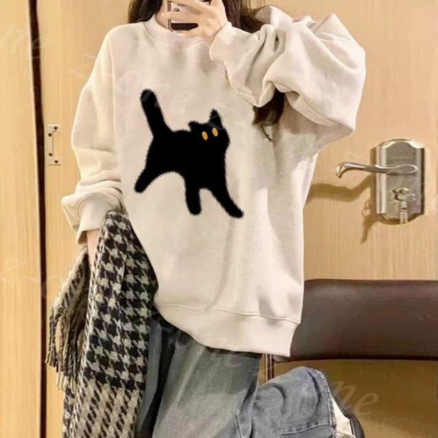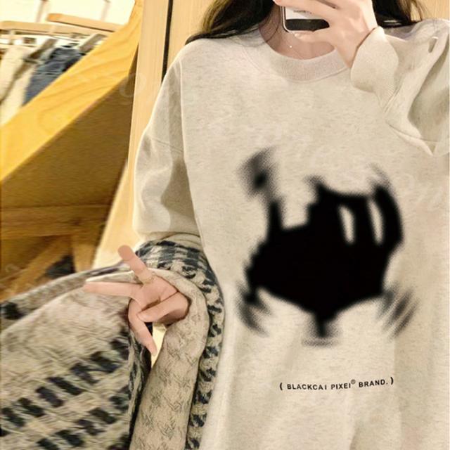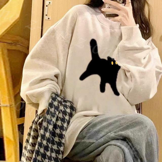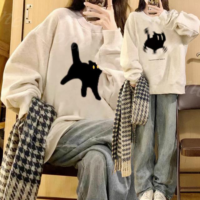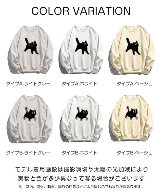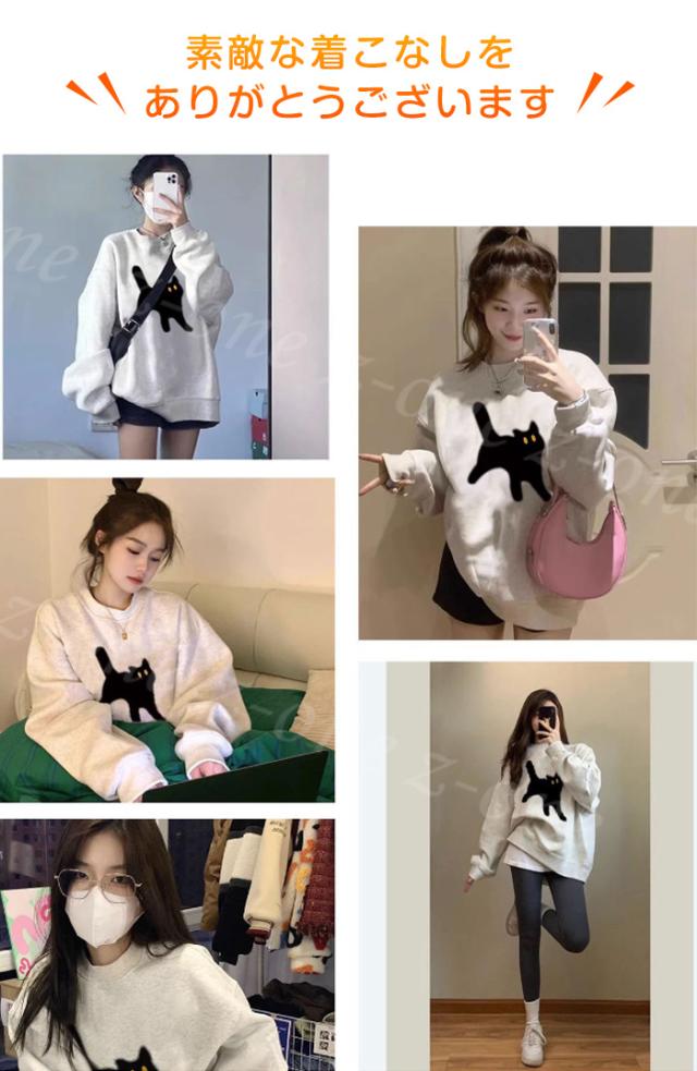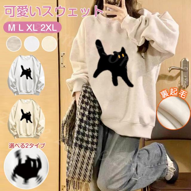 韓国漫画猫トレーナー スウェット レディース トレーナー トップス ネコ 長袖 裏起毛あり 裏起毛なし 冬新作 送料無料 オーバーサイズ プルオーバー レディース 暖か 防寒 裏起毛 ゆったり 秋冬 ロングT ホワイトデー 卒業式