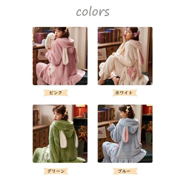 パジャマ レディース ルームウェア ウサギ パジャマ もこもこ フランネル フード付き モコモコ ルームウェア ボア 冬物 女性 あったか