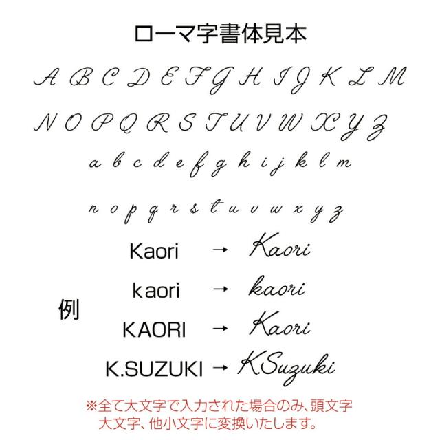 | 名入れ | プリントするお名前は「入力欄」へご記入下さい。 日本語6文字まで ローマ字9文字まで |
