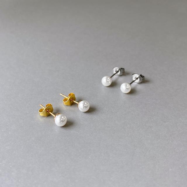 送料無料 一粒パールステンレススタッドピアス 両耳 ペア 真珠 レディース シルバー ゴールド サージカルステンレス 金属アレルギー対応
