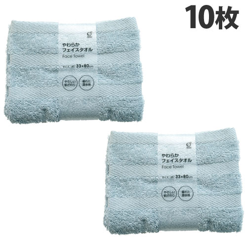 オカザキ やわらかフェイスタオル 33×80cm ブルー 10枚 タオル フェイスタオル バス用品 洗面用品 洗面 吸水性『送料無料(一部地域除く)』