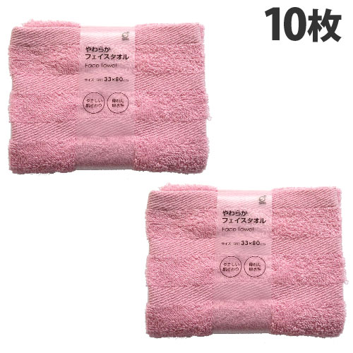 オカザキ やわらかフェイスタオル 33×80cm ピンク 10枚 タオル フェイスタオル バス用品 洗面用品 洗面 吸水性『送料無料(一部地域除く)』