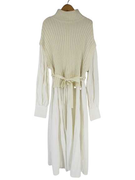 【中古】ROSE BUD ニットベスト ワンピース タートル リブニット 長袖 レイヤード風 無地 サイズF 白 レディース