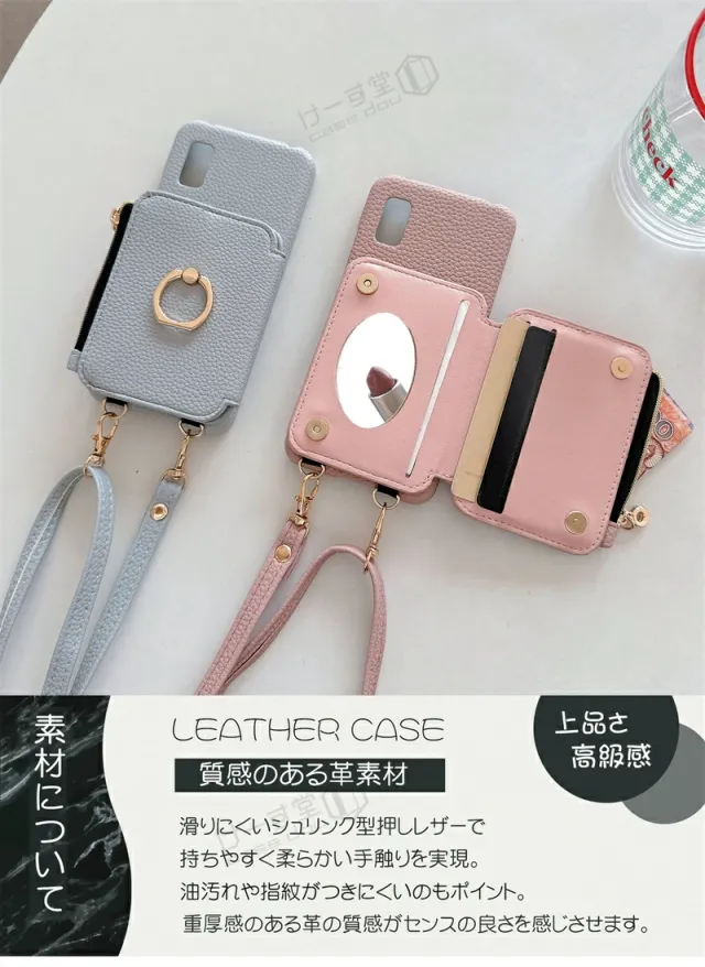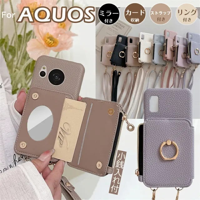 AQUOS Wish5 ケース AQUOS R9 ケース AQUOS Sense10 ケース ショルダー ストラップ付き かわいい AQUOS Sense9スマホケース AQUOS Sense9 ケース AQUOS R9 Pro ショルダーケース AQUOS R10 カバー 背面手帳型ケース リング付き ミラー付き 小銭入れ付き