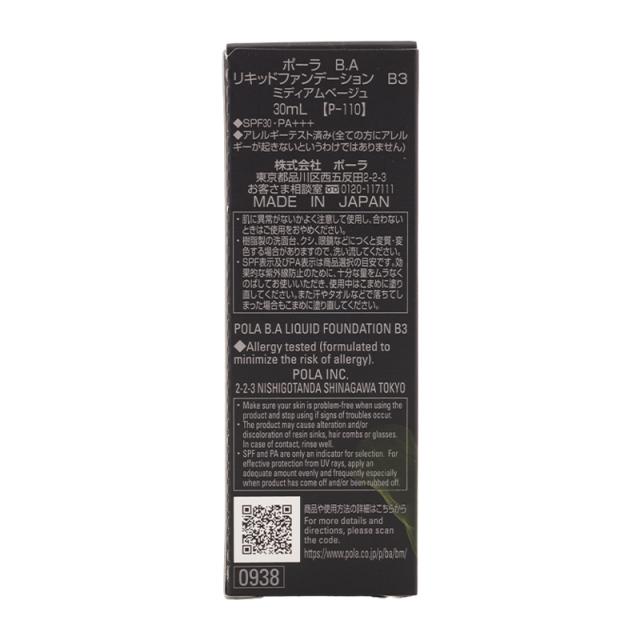 POLA ポーラ B.A リキッドファンデーション B3ミディアムベージュ 30mL SPF30 PA+++ ハリ 色ムラ くすみ[ギフトラッピング対応]