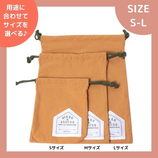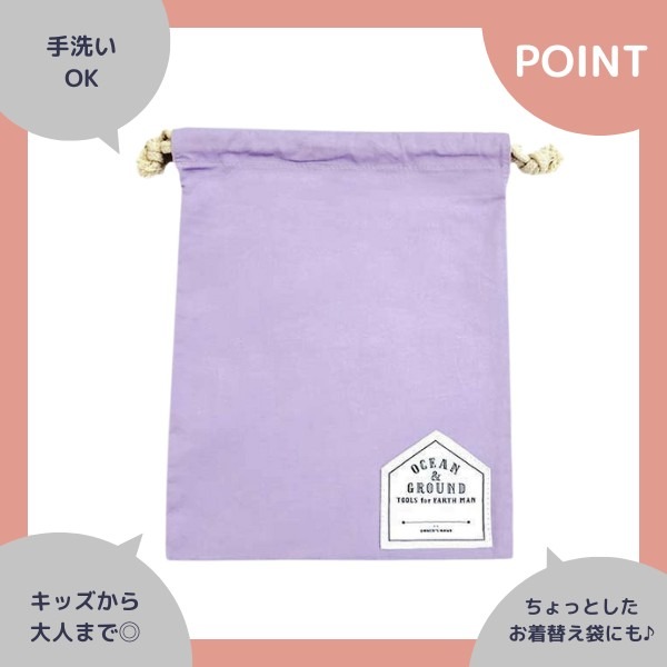Ocean&Ground コットン巾着中 O&G Mサイズ キッズ ジュニア ベビー 巾着 巾着袋 着替え袋 エプロン入れ ポーチ 小物入れ 入園準備 入学準備 入園 入学 収納 シンプル 男の子 女の子 子供 大人 オーシャンアンドグラウンド 4425902