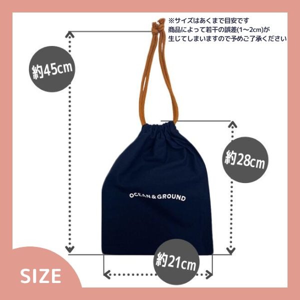 オーシャン&グラウンド オーシャンアンドグラウンド Ocean&Ground コットン 巾着 巾着袋 袋 きんちゃく 給食袋 給食着 エプロン入れ エプロン 着替え袋 着替え入れ 着替え お着替え袋 お着替え入れ お着替え ネームタグ 中 Mサイズ サンズマーケット