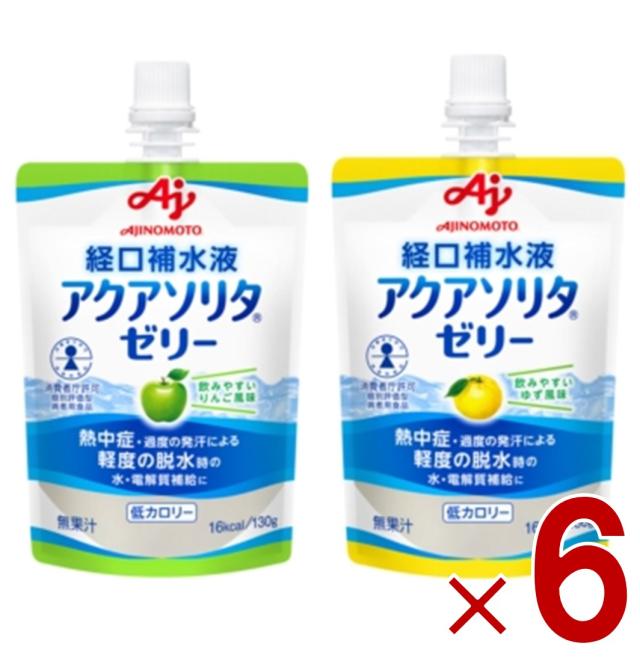 味の素 アクアソリタゼリー 130g りんご ゆず 2種 アソート 経口補水液 熱中症対策 経口補水 栄養ゼリー 熱中症 6個