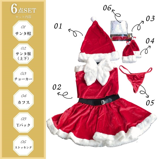 サンタ コスプレ サンタコス レディース コスチューム 帽子 ミニスカ 白 リボン クリスマス衣装 豪華6点セット 送料無料
