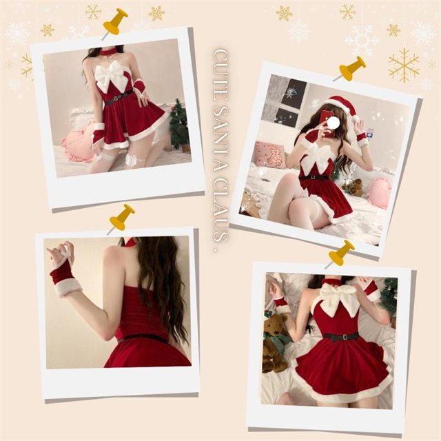 \ 白い大きなリボンが特徴のサンタクロースのコスチューム