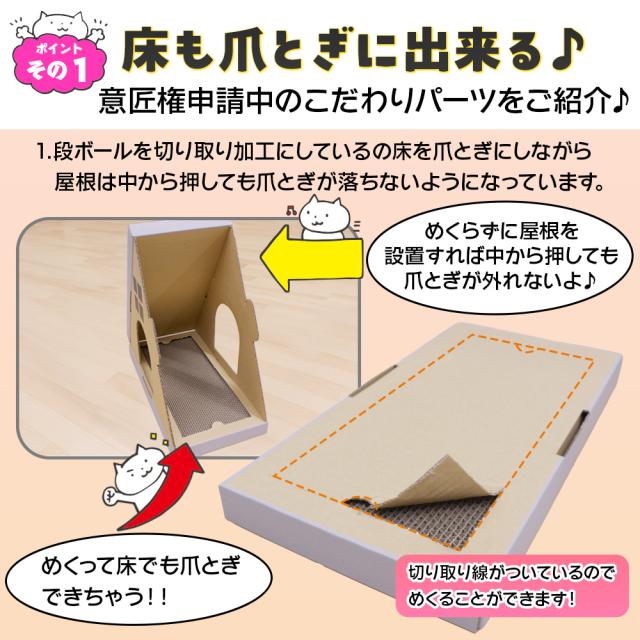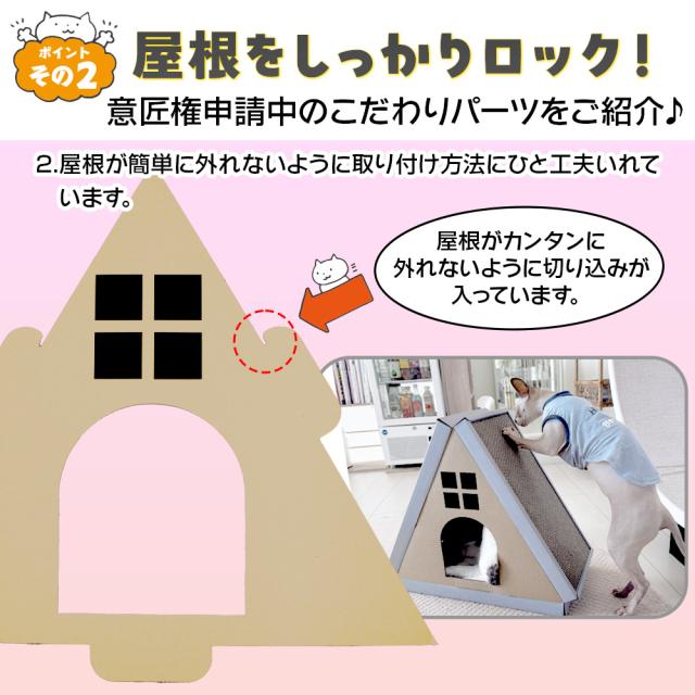 ※屋根部分を切り取ると中から爪とぎを押すと外れてしまう可能性がございますのでご注意ください。