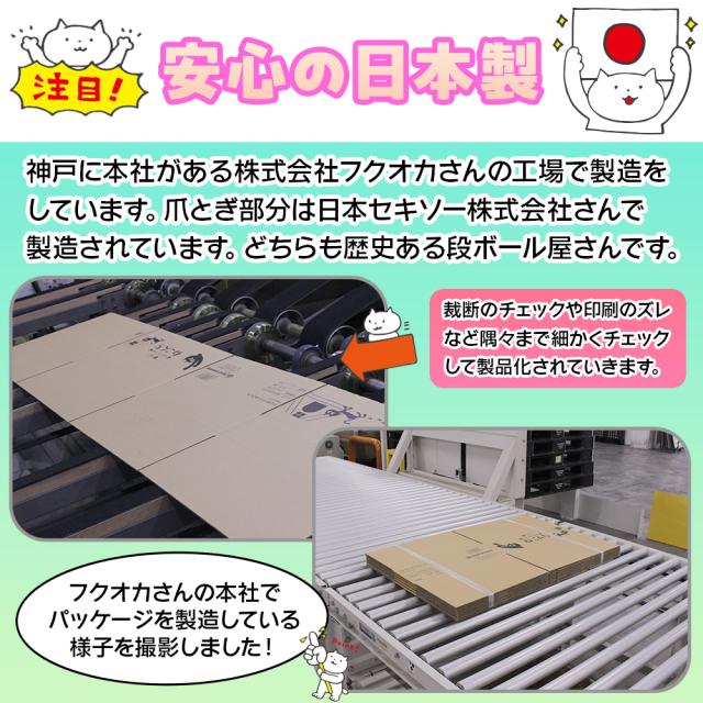 ●【安心の国内生産!】神戸の段ボール会社 株式会社フクオカで国産ダンボールを使用し国内で製造をしました。また安全性に配慮し、接着にはノリを使用していませんので、舐めてもかじっても安心です。