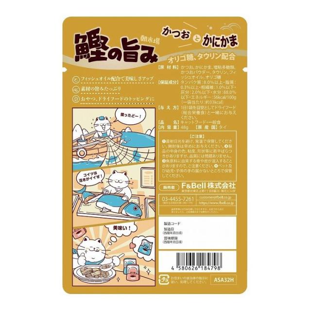 かつお、かにかま、増粘多糖類、かつおパウダー、タウリン、フィッシュオイル、オリゴ糖