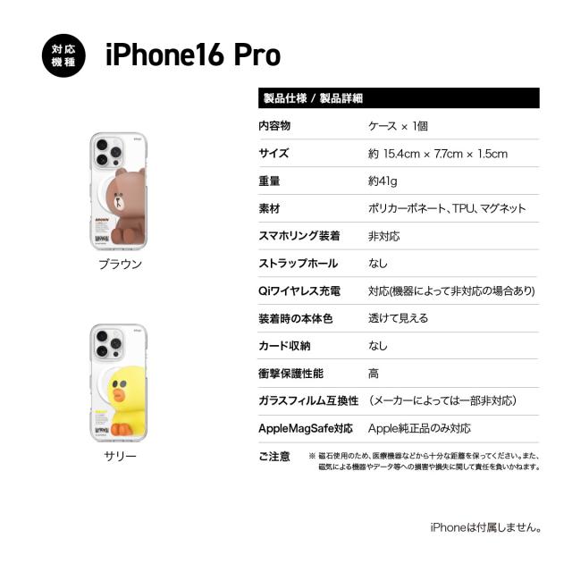 iPhone16Pro ケース ラインフレンズ 公式ライセンス クリア マグセーフ MagSafe対応 耐衝撃 スマホケース [ iPhone 16 Pro アイフォン16 Pro 対応 ] elago LINE FRIENDS Brown & Sally