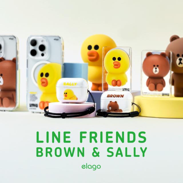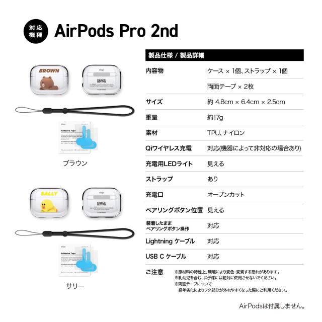 AirPods Pro 2 ケース ラインフレンズ 公式ライセンス ストラップ 付 耐衝撃 クリア TPU カバー [ Apple AirPodsPro2 エアポッツプロ 第2世代 対応 ] elago LINE FRIENDS Brown & Sally