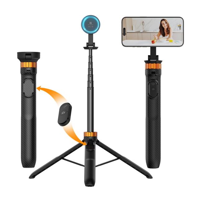 K&F Concept 63” マグネット式スマホ自撮り棒三脚、軽量携帯ホルダー&カメラスタンド、ワイヤレスリモコン付き、iPhone 15/14/13/12シリ