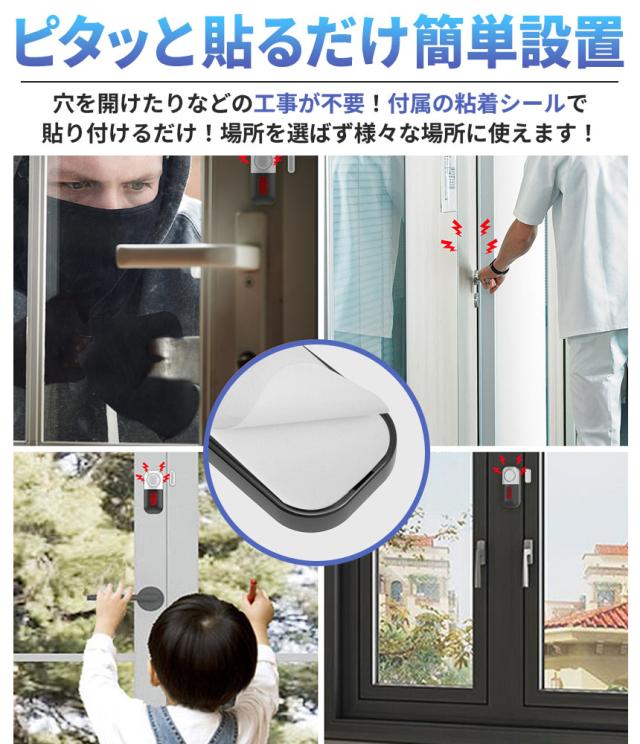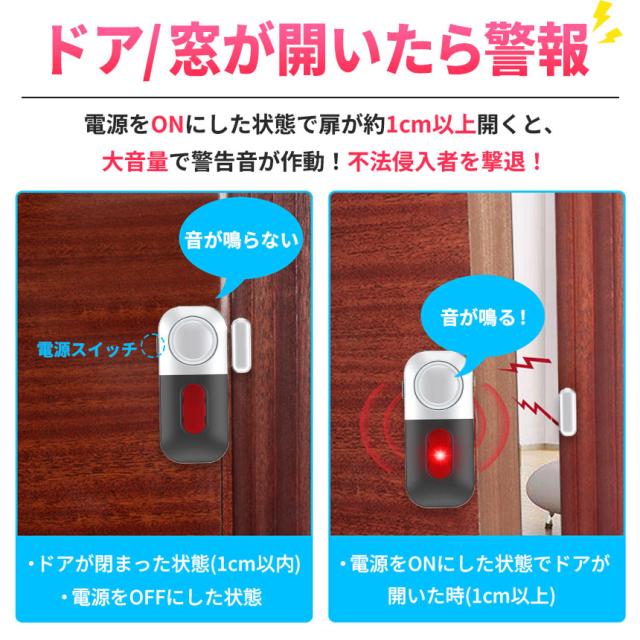 防犯アラーム 窓 ドア 6個セット 防犯ブザー 大音量 125dB 防犯グッズ 窓用 ドア用 扉 引き出し 泥棒 侵入防止 警報 音 電池式 窓ガラス 防止 防犯 警報機 不法侵入 犯罪 闇バイト アラーム ブザー 家 家族 子供 転落防止 簡単 玄関 小型 盗難 セキュリティ 単4電池付属 開く