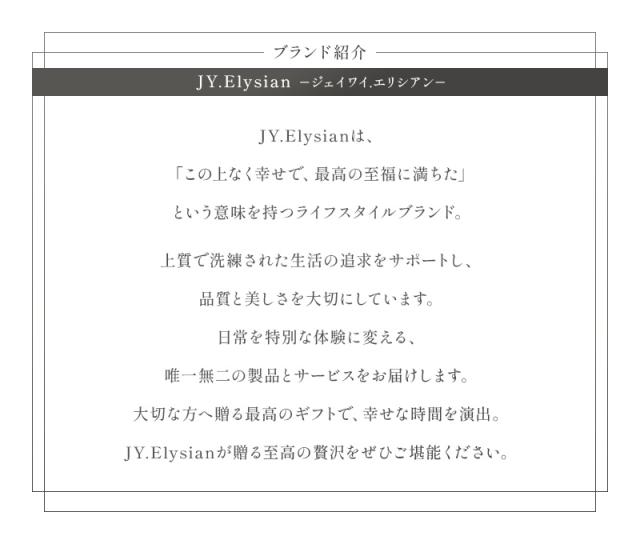 JY. Elysianは、「この上なく幸せで、最高の至福に満ちた」という意味を持つライフスタイルブランドです。