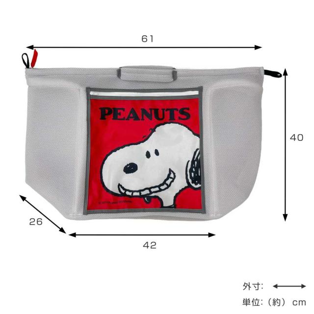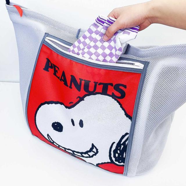 スヌーピーたちのかわいい絵柄がプリントされたサイドポケットが付いています。ハンカチや靴下などの小物を仕分け洗いできます。