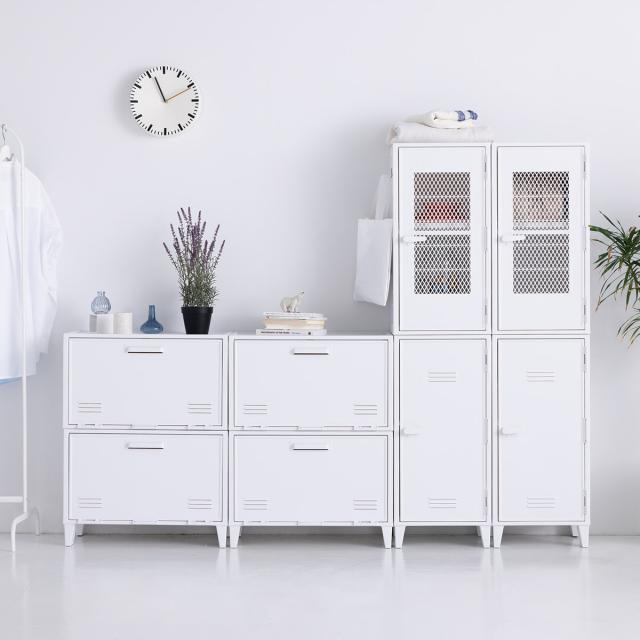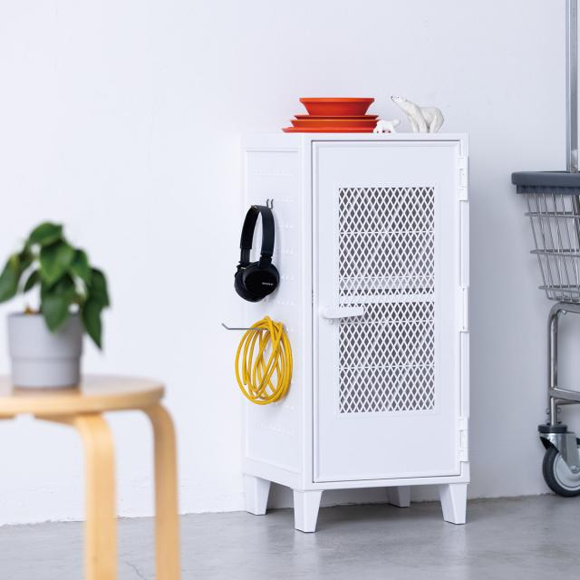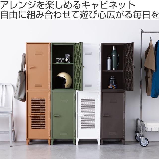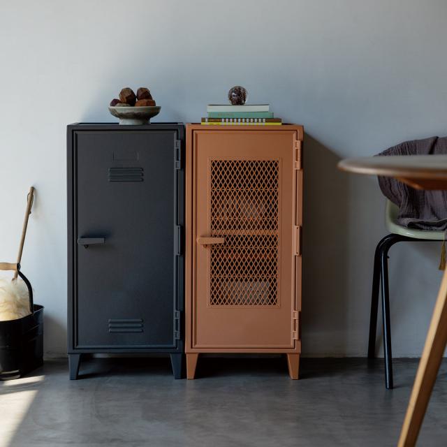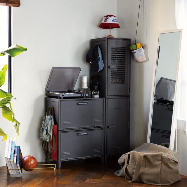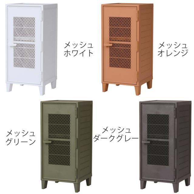 ロッカーのような無機質なデザインながらも、ヴィンテージカラーでお部屋に温かみを与えます。正面は、中身が見えないタイプと中身が透けて見えるメッシュタイプがございます。