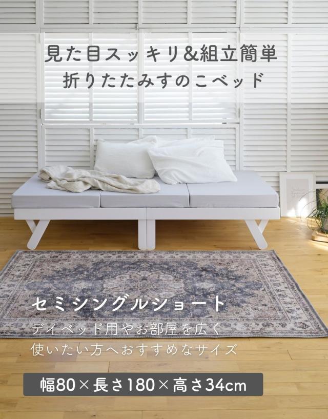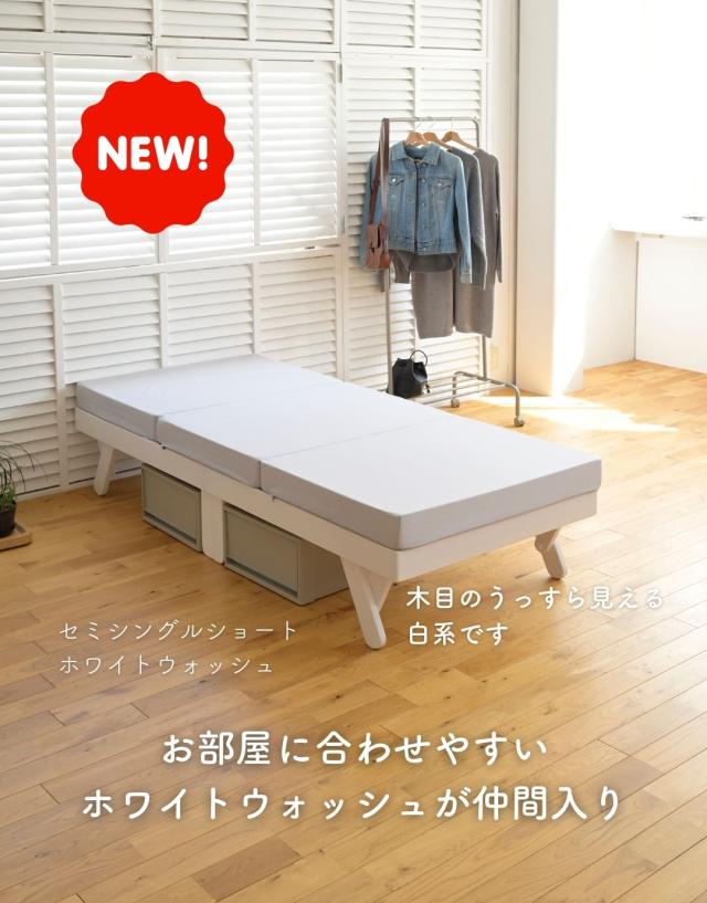 ベッド ベッドフレーム セミシングルショート 木製 折りたたみ パタントベッド ホワイトウォッシュ 幅80 長さ180 高さ34cm すのこベッド 折りたたみベッド 並べる 連結 すのこ きしみにくい SSS 組立簡単 コンパクト 山善 YAMAZEN 【送料無料】