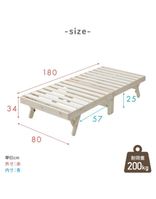 | 本体サイズ | 幅80×奥行180×高さ34cm 重量17.2kg |