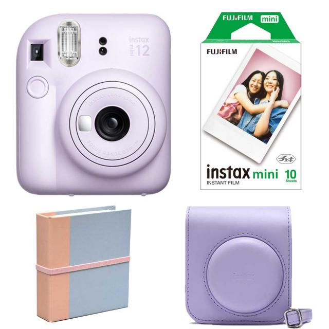 (4点セットB)富士フイルム インスタントカメラ チェキ instax mini 12 パープル フィルム アルバム 専用ケース付き!
