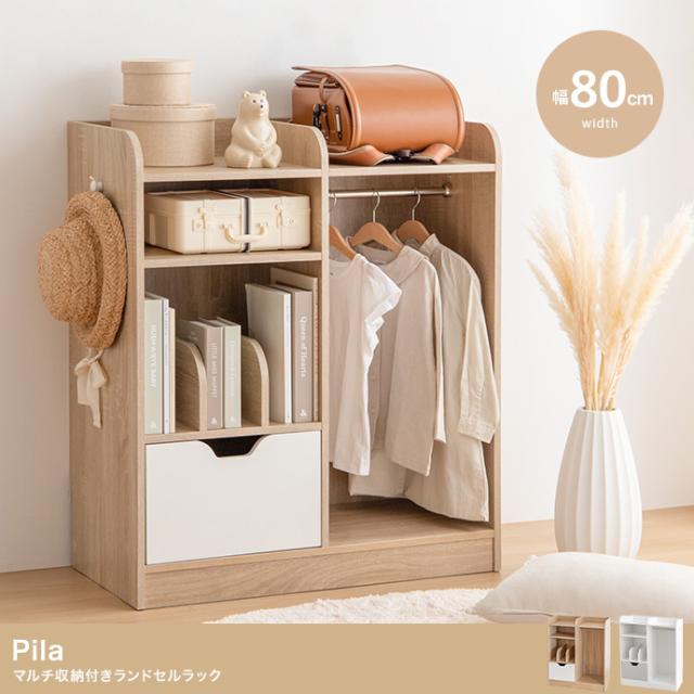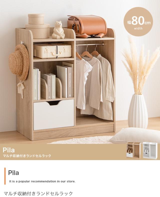 ランドセル収納 ラック 幅80cm マルチ収納 ランドセルラック Pila(ピラ) 2色対応 ハンガーラック ロータイプ 本棚 ブックラック 絵本棚 教科書収納 カバン掛け 帽子掛け シンプル おしゃれ 子供部屋