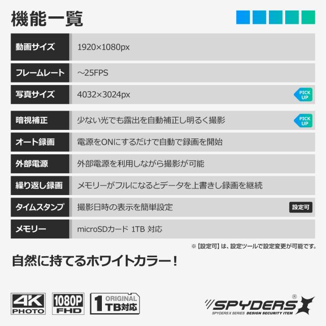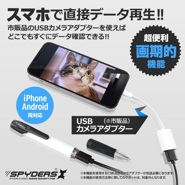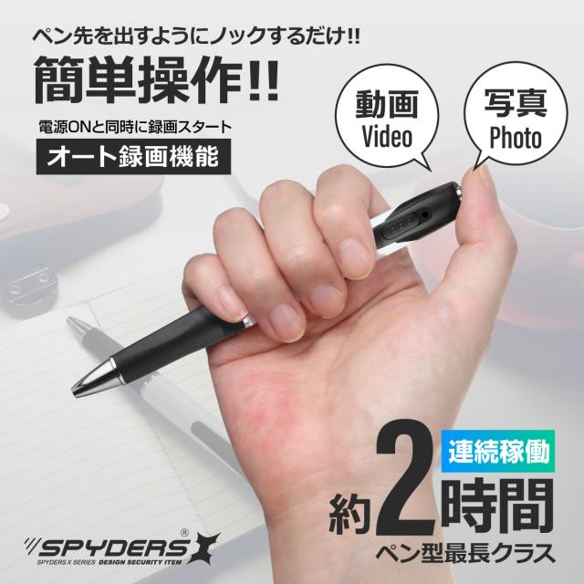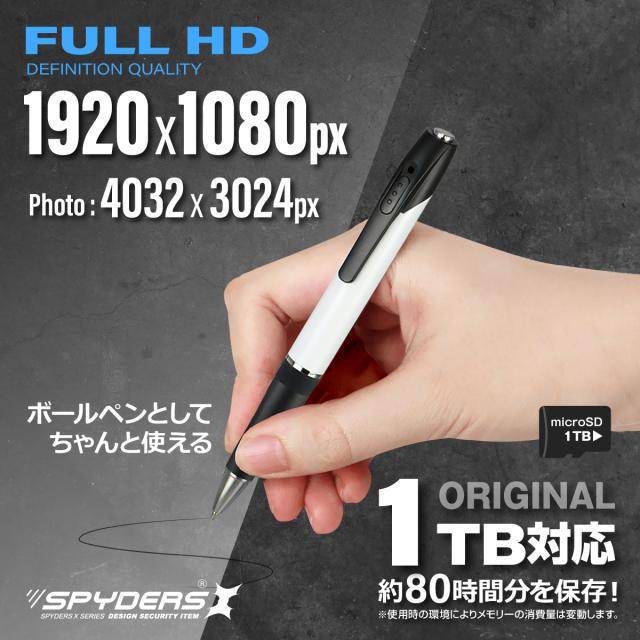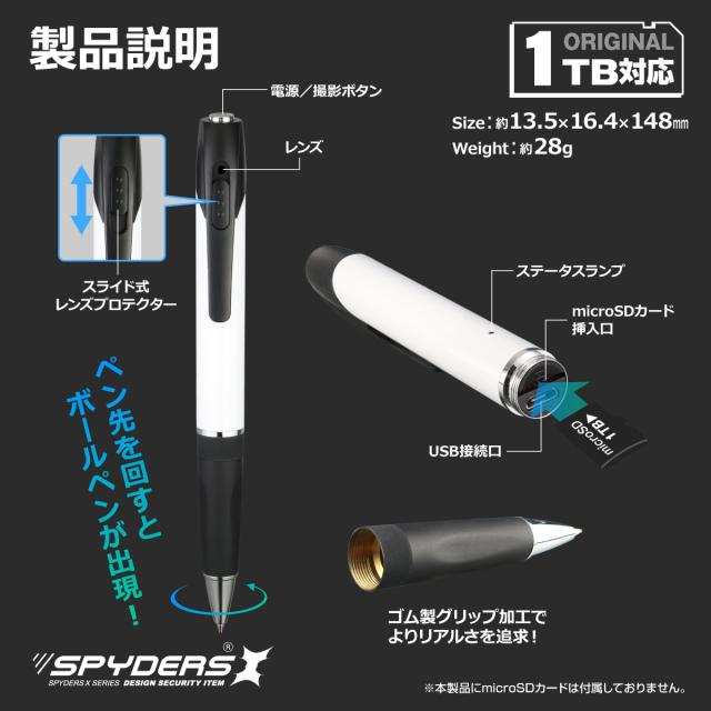 スパイダーズX スパイカメラ 1080P ペン型カメラ 小型カメラ [P-131] 暗視補正 Photo4K カードリーダー 256GB対応