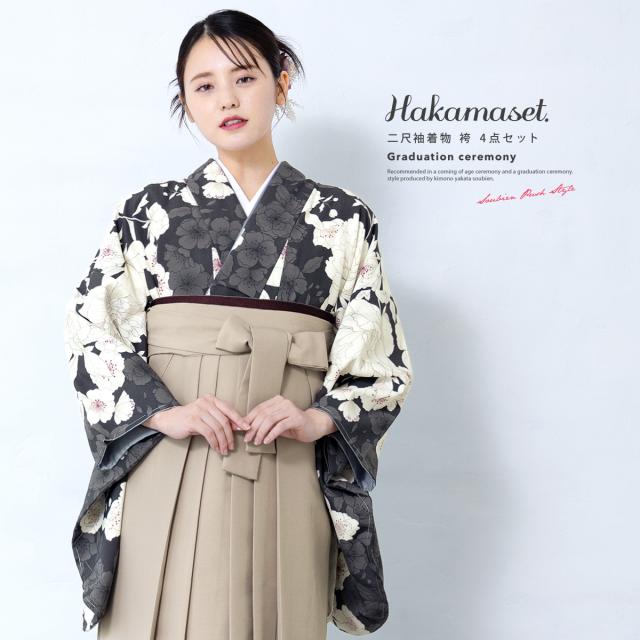 袴セット 卒業式 大学生 小学生 レディース 女の子 セット ブラック 黒 グレー 白 ベージュ 花 和装 着物セット 販売 購入 送料無料