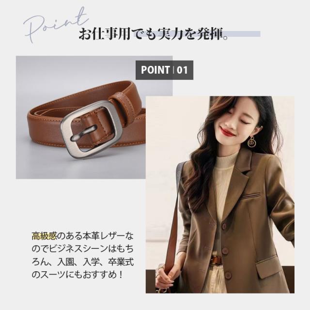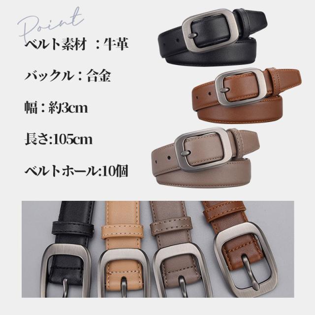 【水曜日まで!10%クーポン配布中】 ベルト レディース 本革 太 シンプル 革 3cm スーツ ビジネス ワンピース パンツ おしゃれ 牛革 牛革ベルト フォーマル