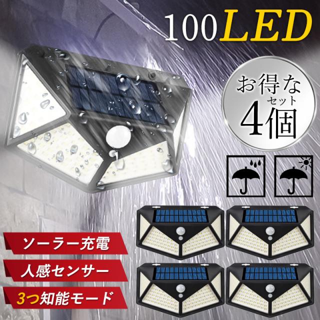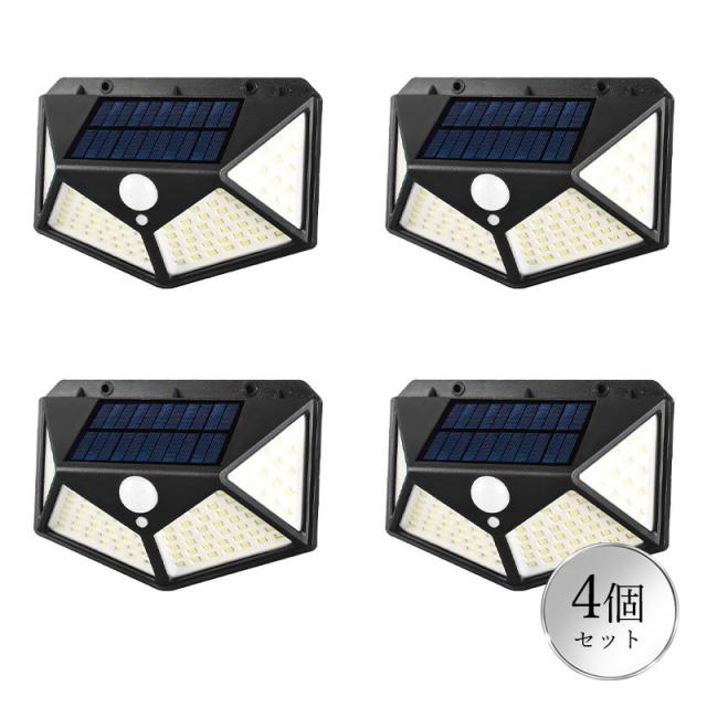 ソーラーライト 4個セット センサーライト 100LED セキュリティライト 防犯ライト 人感 防水 ポーチライト 高輝度 照明
