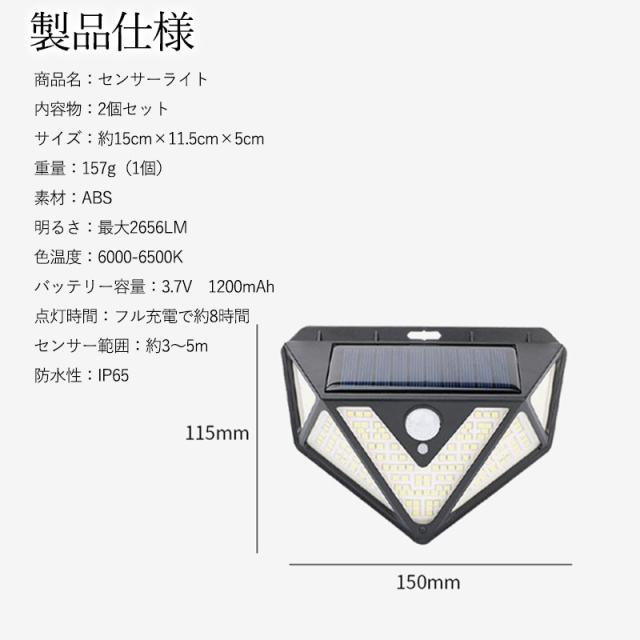ソーラーライト 2個セット センサーライト 166LED 高輝度 セキュリティライト 防犯ライト 人感 防水 広角 ポーチライト