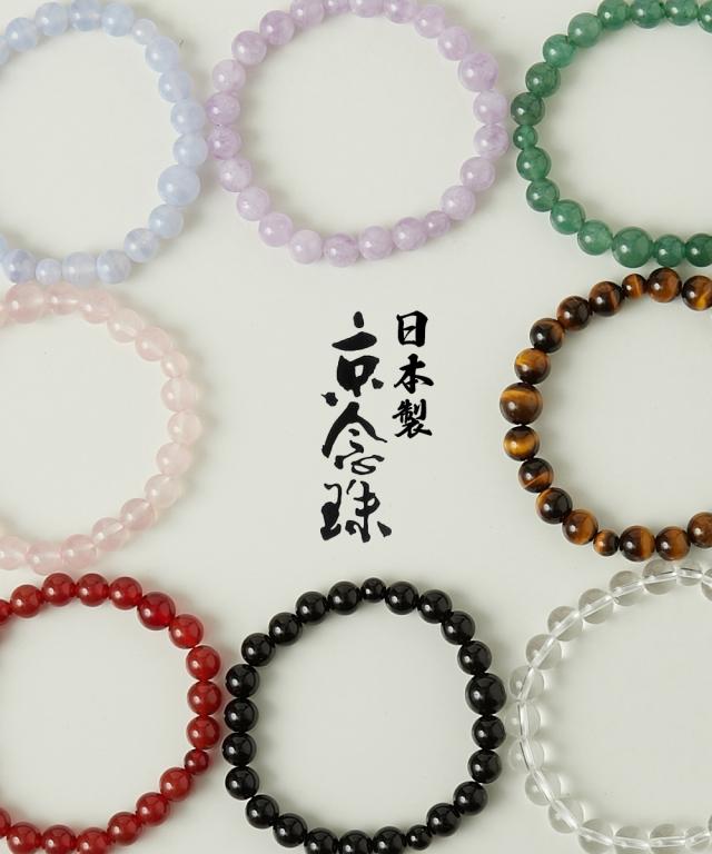 ■すべての宗派でお使いいただけるお数珠です。京念珠は全て手作りです。 ひとつのお念珠、数珠が完成するまでに多数の作業があり、それぞれの専門職人の熟練の技によって作り上げられております。 数珠は「珠数」「寿珠」などとも書き、全国的に広く普及している法具(仏具)です。 仏教のお経や念仏を唱える際、その回数を数える為に使われることから、念珠とも呼ばれます。 天然石を使用したシンプルな数珠ブレスレットです。日常的にもご利用いただけます。