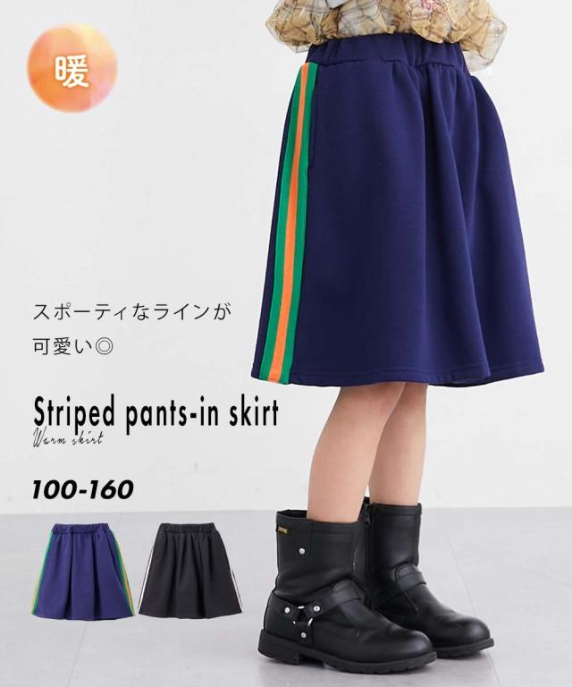 子供服 キッズ 裏起毛ライン パンツ イン スカート 男の子 女の子 冬 ボトムス ガールズ 身長100/110/120/130cm