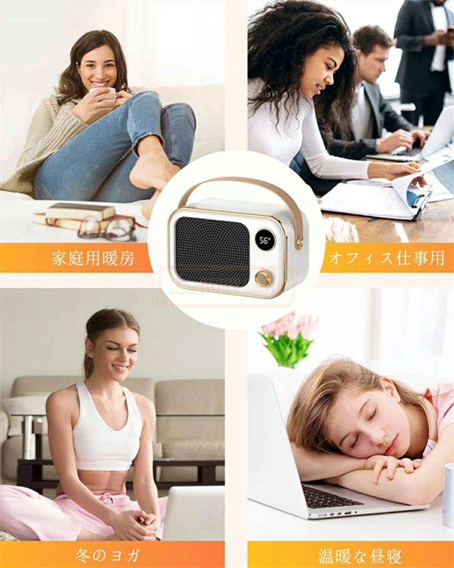 | 【様々な場所活躍】 | ◆本ヒーターは、寝室はもちろん、勉強部屋、ベッドルームやリビングルーム、オフィス、脱衣所、玄関、台所など様々な場所で適用できます、図書館内、読書や勉強など、集中したい時にもおすすめです。(ご注意:防水ではありませんので、浴室などでは使用しないでください。)寒冬でご家族やお友人、クラスメート、恋人に防寒グッズとしてプレゼントにも!「暖かさ」を届けましょう。寒い冬にはお得意様、両親、彼女、友達への最高なプレゼントです。 |