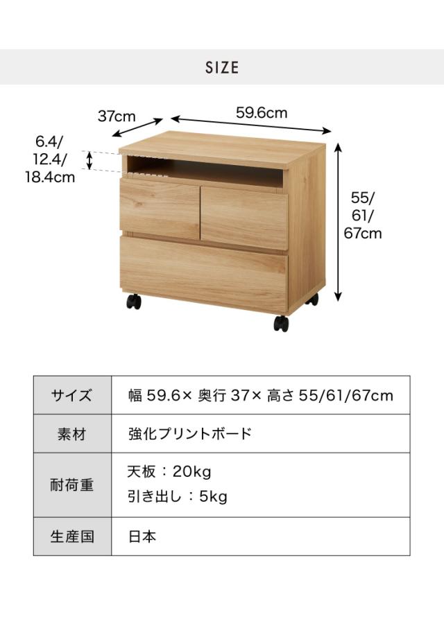 昇降式 テレビワゴン 幅60cm 55cm~67cmの昇降2段スライドレール キャスター付き 完成品【送料無料】