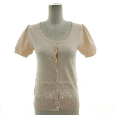 【中古】レッセパッセ LAISSE PASSE カーディガン ニット パールボタン レース 半袖 ピンクベージュ 38 レディース