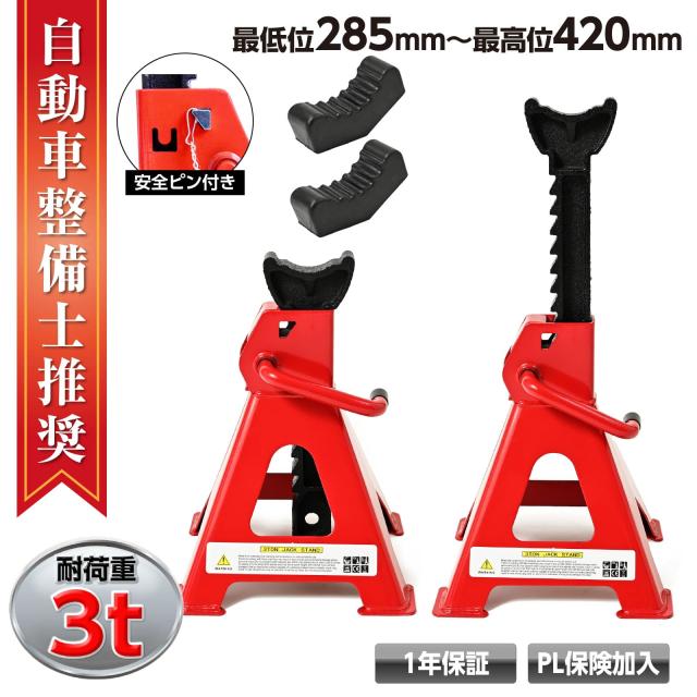 ジャッキスタンド 3t ラチェット式 2基セット 高さ調節可能 最低位285mm/最高位420mm 馬ジャッキ リジットラック