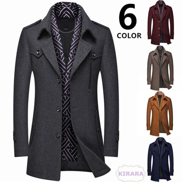 ピーコート メンズ チェスターコート 厚手 暖かい ビジネスコート 紳士服 通勤 通学 ステンカラーコート Pコート ジャケット 秋冬?アウター マフラー付き オフィス フォーマル ウール メルトン アウター 無地 ロング丈 大きいサイズあり