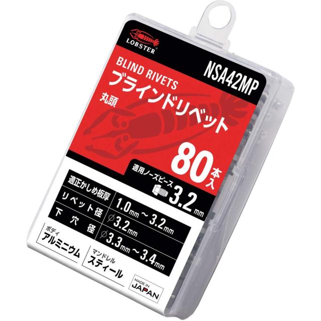 ◆商品名:ロブテックス ブラインドリベット エコパック入リ アルミニウム/スチール 4-2 (80本入) NSA42MP リベット径(mm):3.2×リベット長(mm):6.5