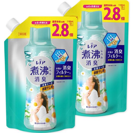 レノア 超消臭 煮沸レベル消臭 抗菌ビーズ 部屋干し 花とおひさまの香り 詰め替え 1,180ML×2袋【まとめ買い】