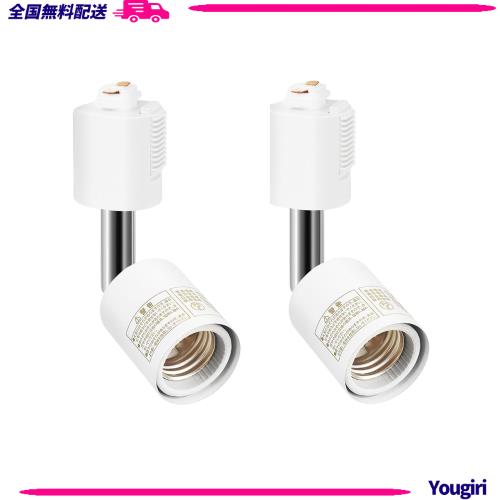 Pispoer ダクトレール用ライト、E26口金、電球なし、ライティングレール 照明、配線ダクトレール用器具、照射角度調節可能、白い、2個セ
