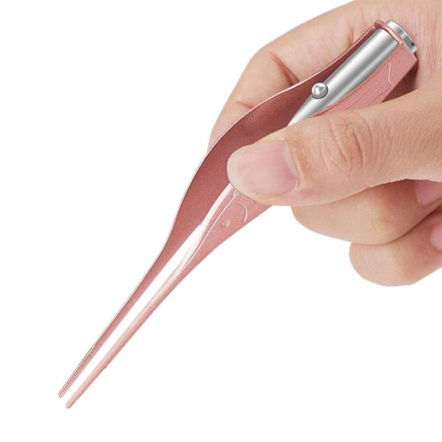 DFsucces LEDライト付き耳かき ピンセット 耳掃除 子供用 極細先端 ステンレス製 ピンセットタイプ ミミ光棒 はっきり見える(ローズゴー