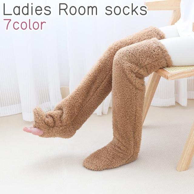 ルームソックス ニーハイソックス レディース 女性 婦人 靴下 くつ下 ソックス 茶色 グレー ピンク シンプル もこもこ ふわ